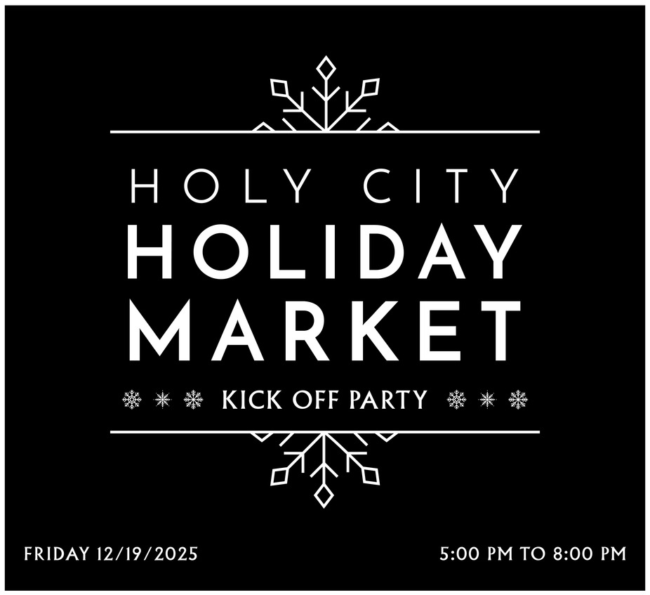 Jingle on down to Old Park Circle for the Holy City Holiday Market this December for a multi-day shopping event. This festive pop-up market begins with a Preview Party on Friday, December 19 2025 on the lawns at Holy City Brewing and Firefly Distillery.
